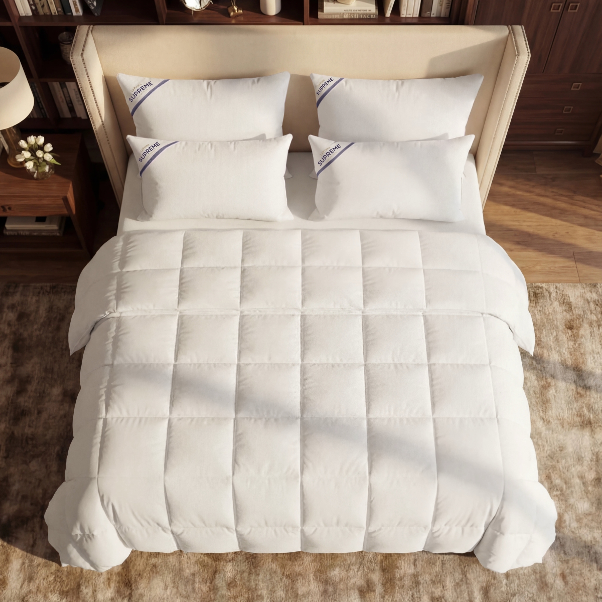 Почувствуйте настоящее сибирское тепло, созданное для вашего идеального отдыха. Supreme Collection — это премиальные пуховые одеяла из натурального белого гусиного пуха высочайшего качества. Они дарят невесомое, но интенсивное тепло, адаптируясь к вашему ритму жизни и обеспечивая здоровый микроклимат всю ночь.