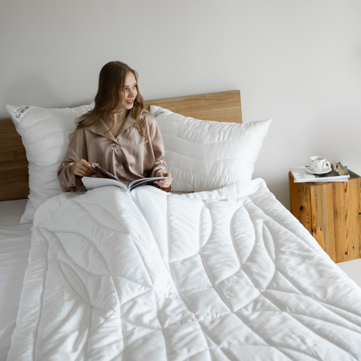 Почувствуйте роскошь заботиться о себе каждую ночь с премиальным одеялом SilvaSilk из уникальной ткани 100% лиоцелл с коллагеном в сочетании с наполнителем из 100% NanoSilk.