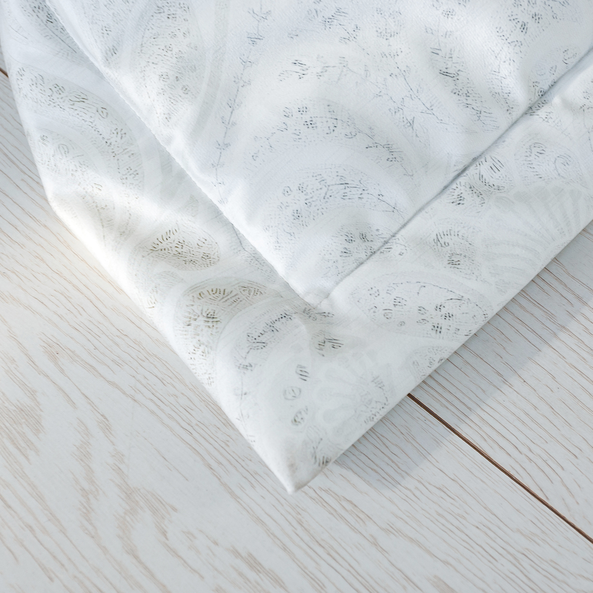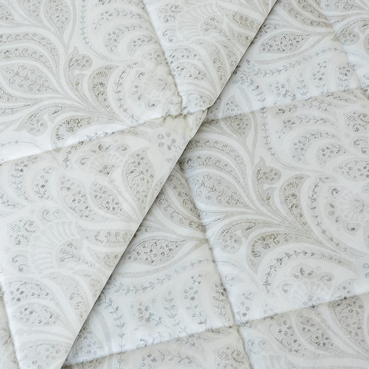 «Франческа» - покрывало с утонченным узором станет отличным выбором для любителей сдержанной элегантности. Легкие линии и деликатные формы, выполненные в пастельных оттенках серого и белого, создают атмосферу уюта и спокойствия. Нежный орнамент, словно сотканный из тончайших нитей, напоминает легкое дыхание природы, придавая интерьеру утонченность и гармонию.