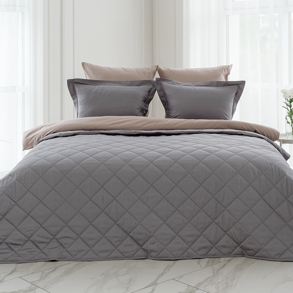 ОСОБЕННОСТЬ модели: хлопковое покрывало на кровать с закругленным уголком, практичной окантовкой по периметру изделия и стильной стежкой в виде ромбов. Верхняя и нижняя часть покрывала выполнены из высококачественного египетского хлопка – безопасного, натурального и комфортного материала.