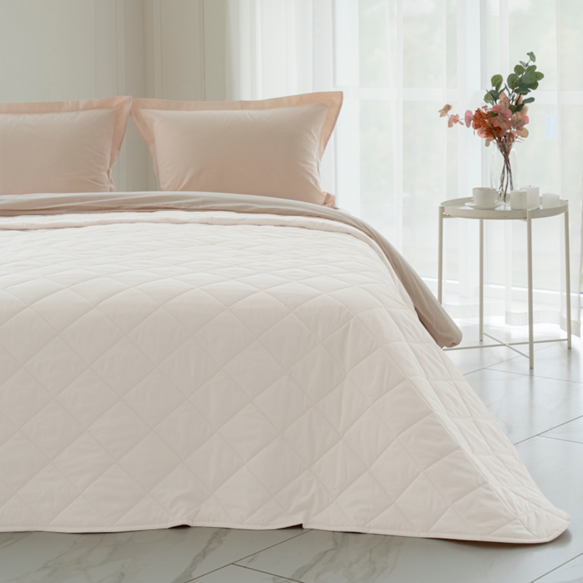 ОСОБЕННОСТЬ модели: хлопковое покрывало на кровать с закругленным уголком, практичной окантовкой по периметру изделия и стильной стежкой в виде ромбов. Верхняя и нижняя часть покрывала выполнены из высококачественного сатина - безопасного и натурального материала.