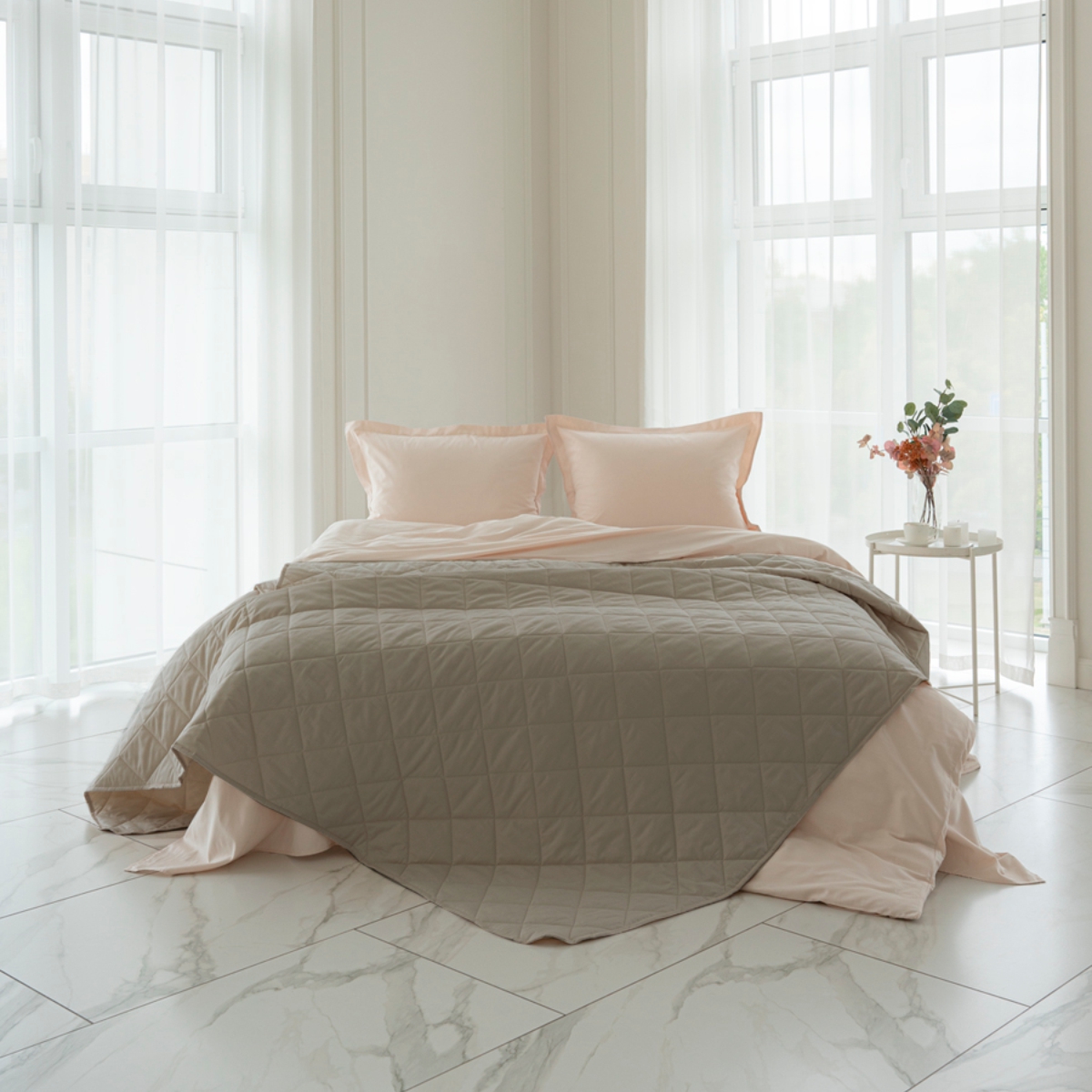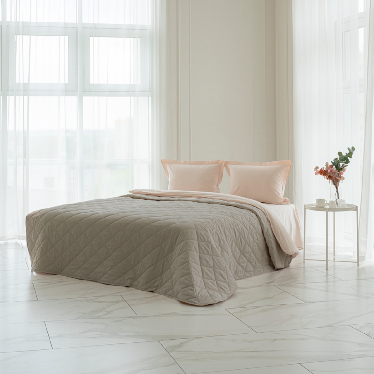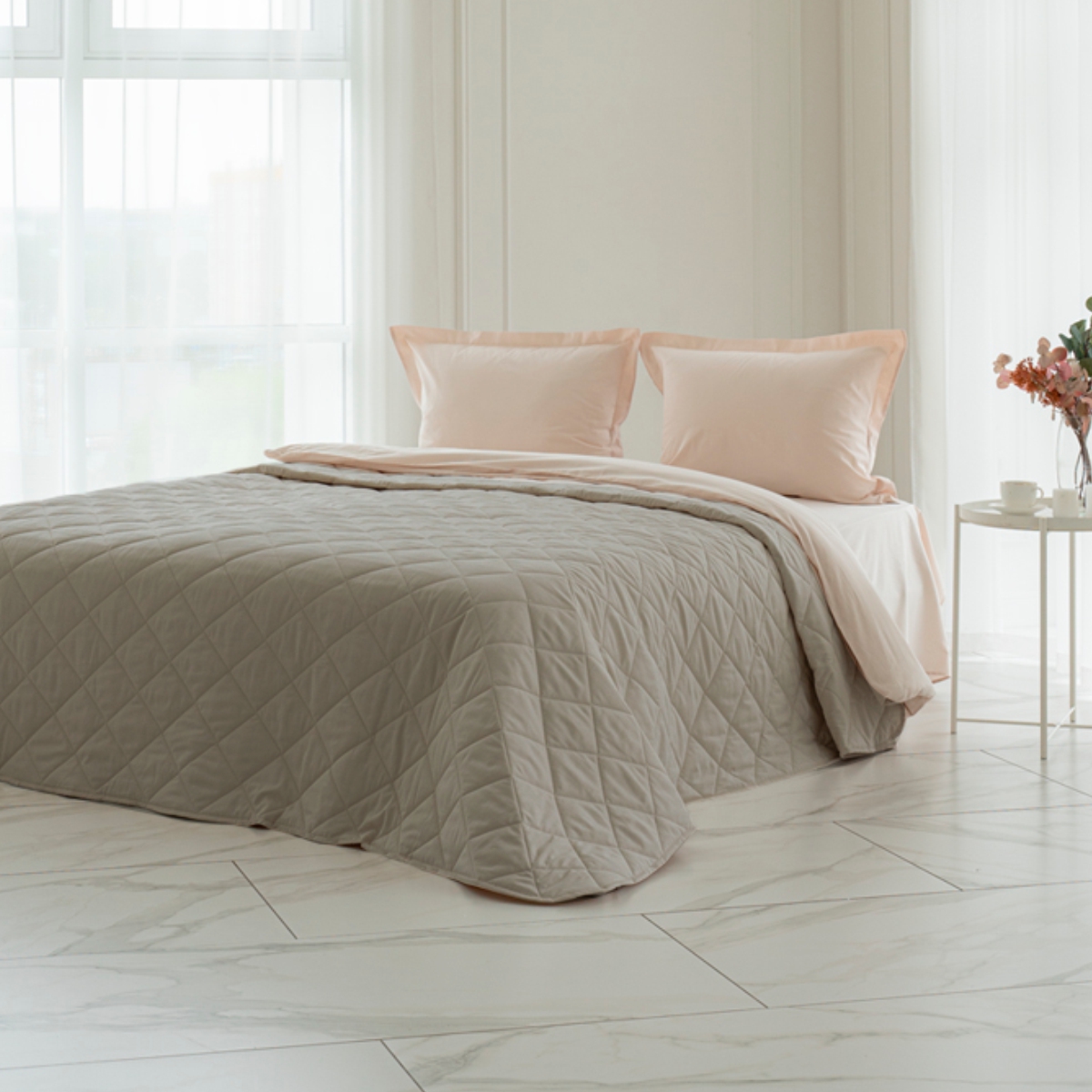 Покрывало 220 на 240 стильно украсит кровать, а также благодаря тонкому слою наполнителя его можно использовать как легкое одеяло.