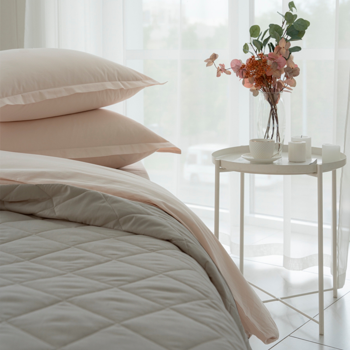 Удобное решение для оформления интерьера в едином стиле - покрывала выполнены в тех же расцветках и из той же ткани, что и однотонное постельное белье La Prima.