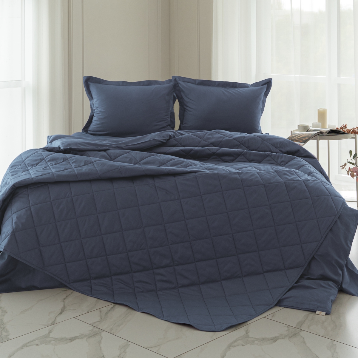 Нежное двухстороннее стеганое покрывало из 100% хлопка (сатин, плотность 205ТС) с гипоаллергенным 3D-наполнителем (100 г/м²) создано для тех, кто ценит: