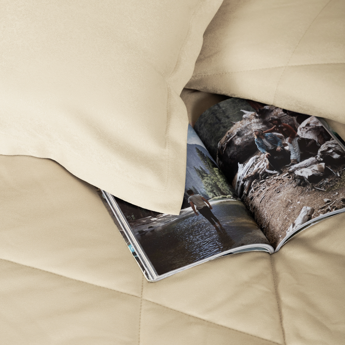 Подклад: микрофибра велюр, за счет своей фактуры он предотвращает скольжение покрывала на кровати