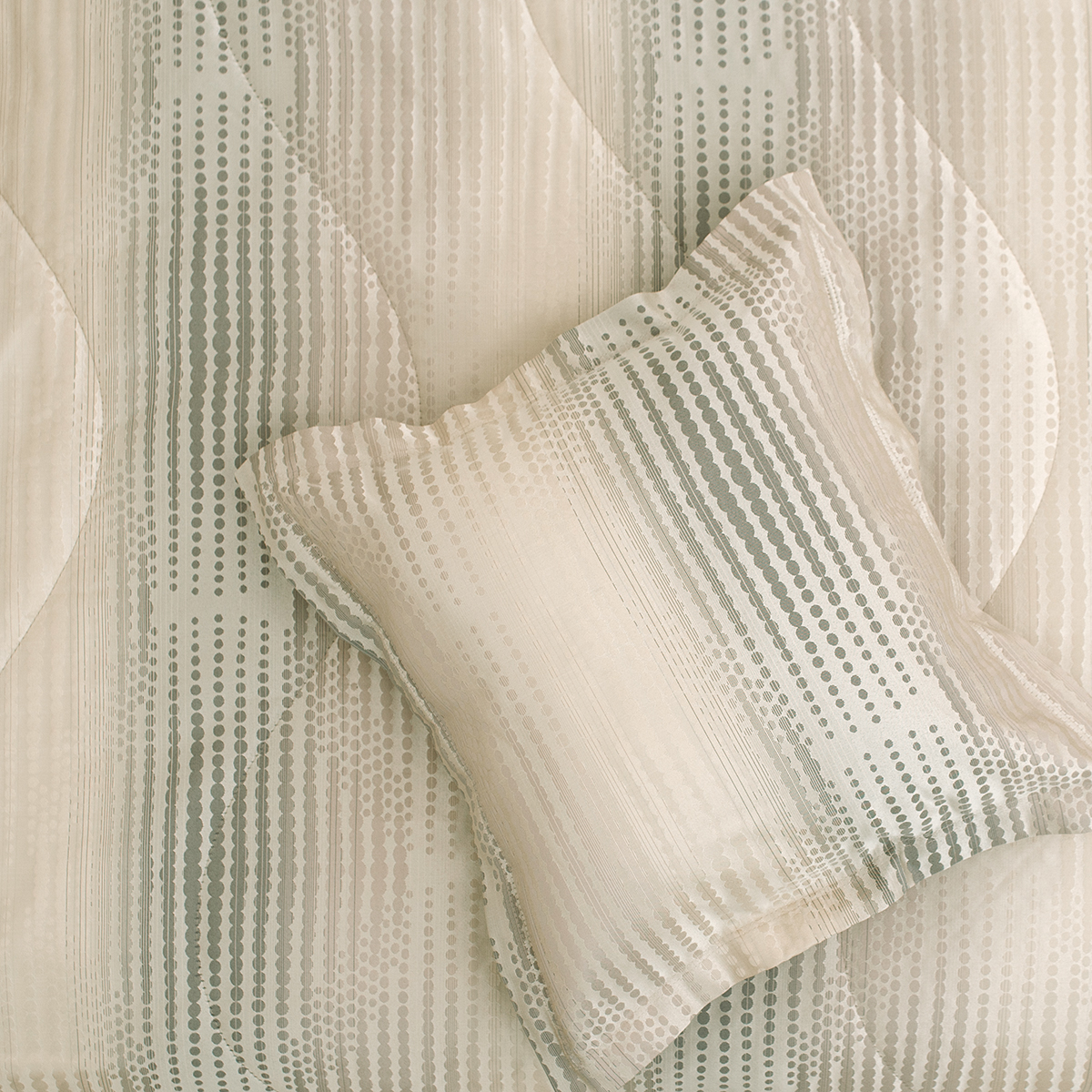 В комплект входит: стеганное покрывало на подкладе размер 240*260 см и 2 декоративные наволочки 45х45 см на молнии. Наволочки с четырех сторон декорированы ушками шириной 3 см.