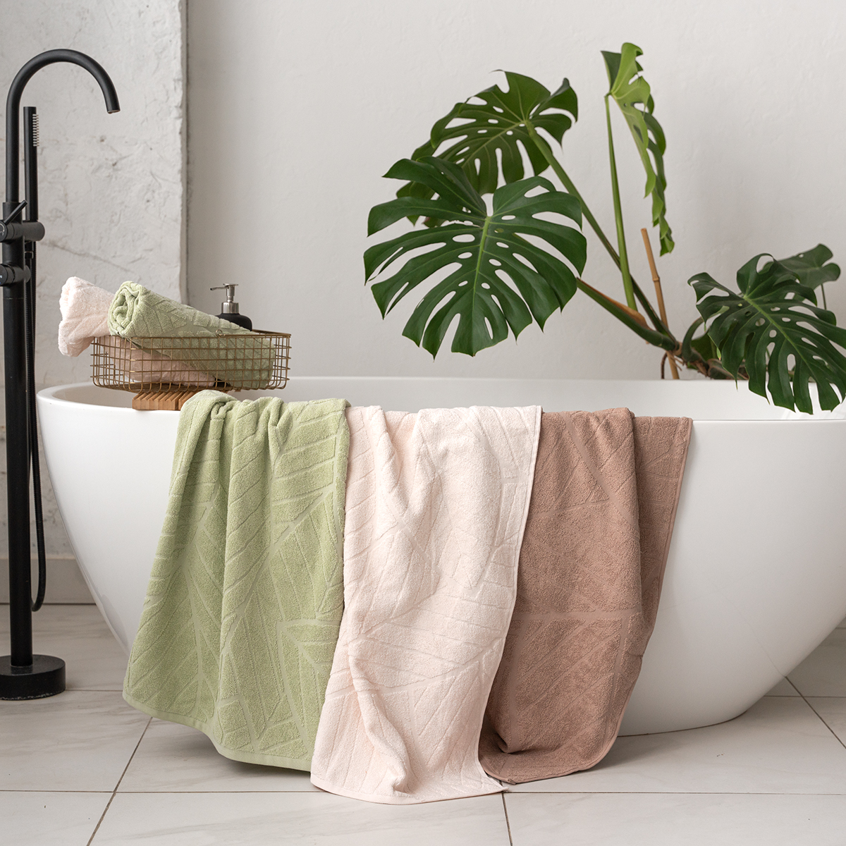 Махровые полотенца Charm. Стильный тренд - ультрамодный растительный принт создает яркий акцент в интерьере.