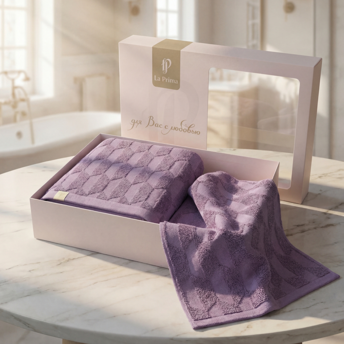 Два пушистых полотенца, упакованные в стильную коробку— вам остаётся только вручить.