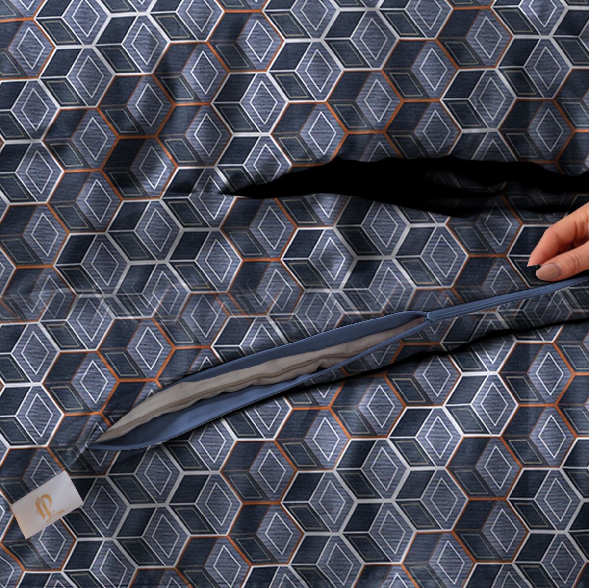 Строгая геометрия линий и форм и стильная контрастность идеально гармонируют между собой. Особую брутальность дизайну придает насыщенная и глубокая палитра темно-синих оттенков. Такой комплект – хорошее решение для современного мужского интерьера.