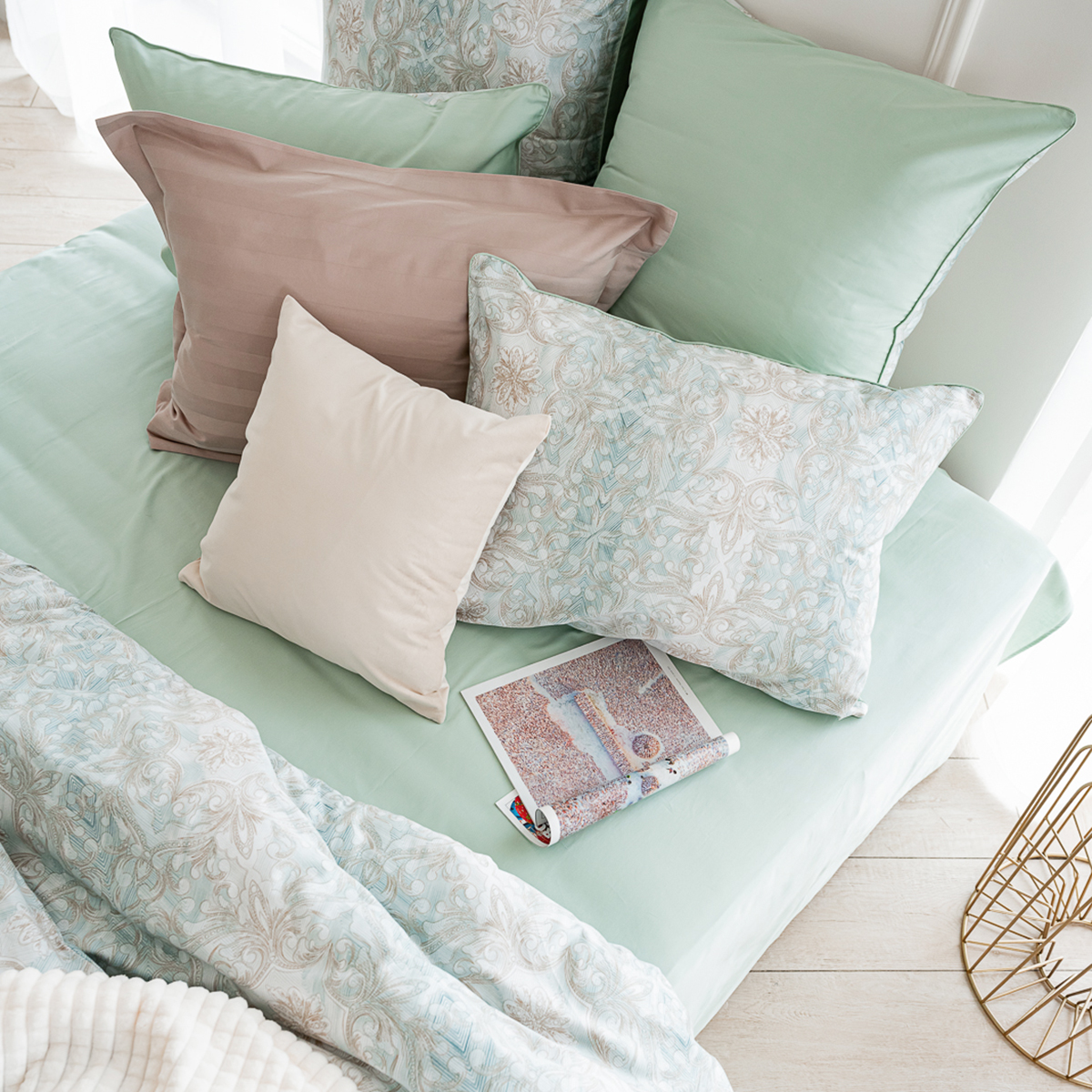Нет ничего прекраснее кровати, которая так и манит в свои нежные объятия! Наши исключительно мягкие комплекты из мако-сатина действуют именно так — они дышащие, гладкие, прочные и словно созданы для аристократической спальни.