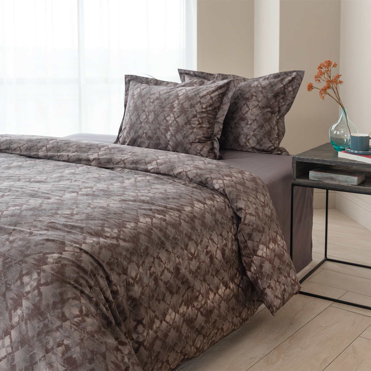 Стильный комплект постельного белья произведен из ткани сатин - 100% хлопок. Благодаря сатиновому плетению двойной крученой нити хлопка, сатин – очень приятная, мягкая, но в то же время прочная ткань. Постельное белье пропускает воздух, поддерживает комфортную температуру тела, когда вы спите.