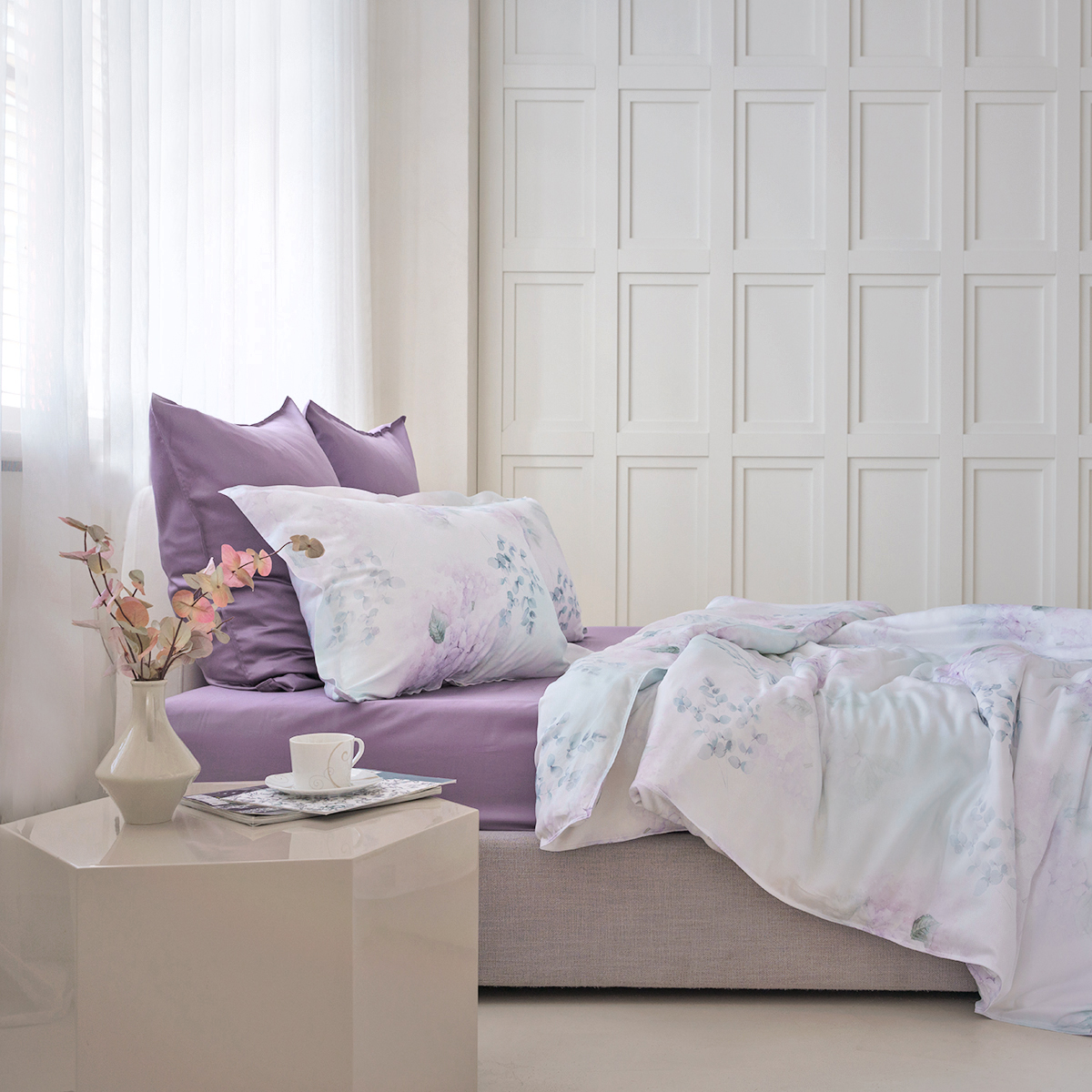 Комплект постельного белья произведен из 100% эвкалиптового волокна Tencel, которое ученые называют инновационным материалом нового поколения.