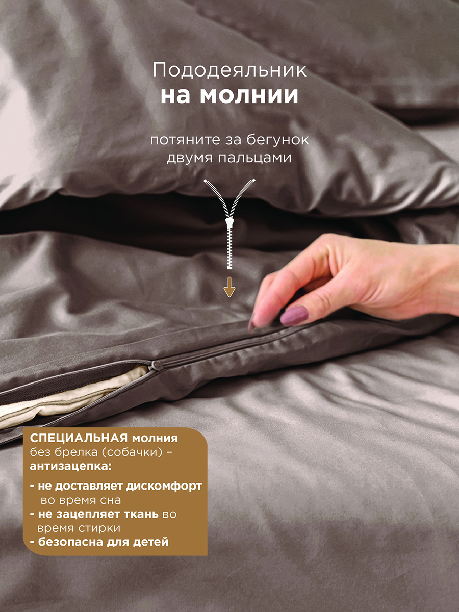 • пододеяльник 200х220 см с «невидимой» молнией-антизацепкой по всей ширине и клапанами для вдевания одеяла.