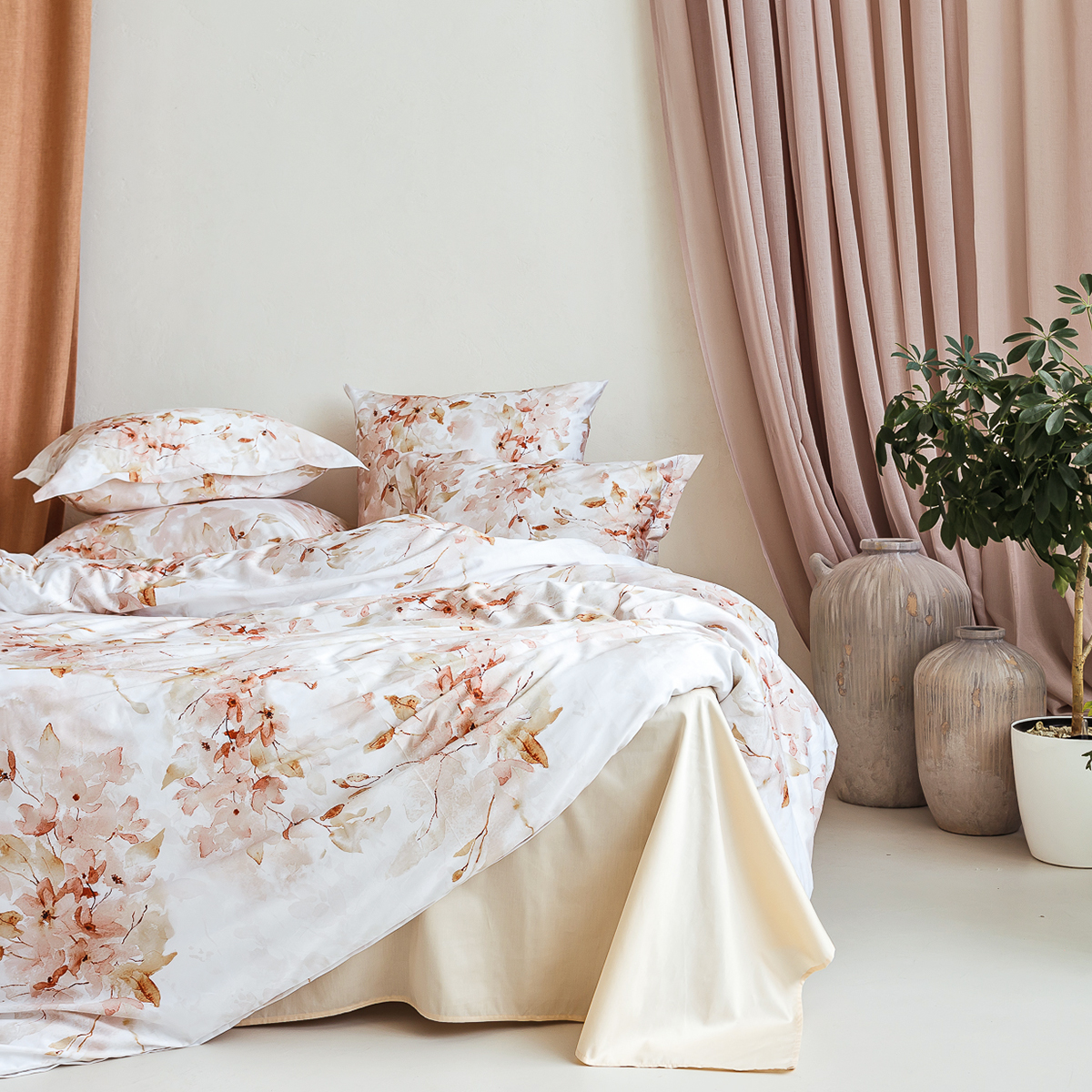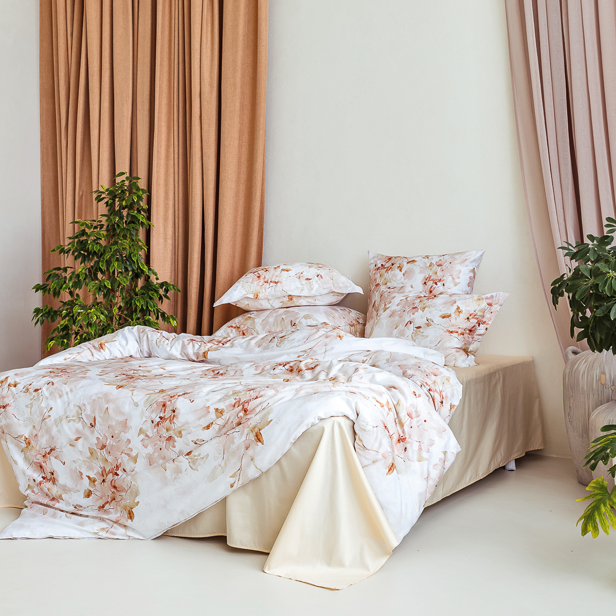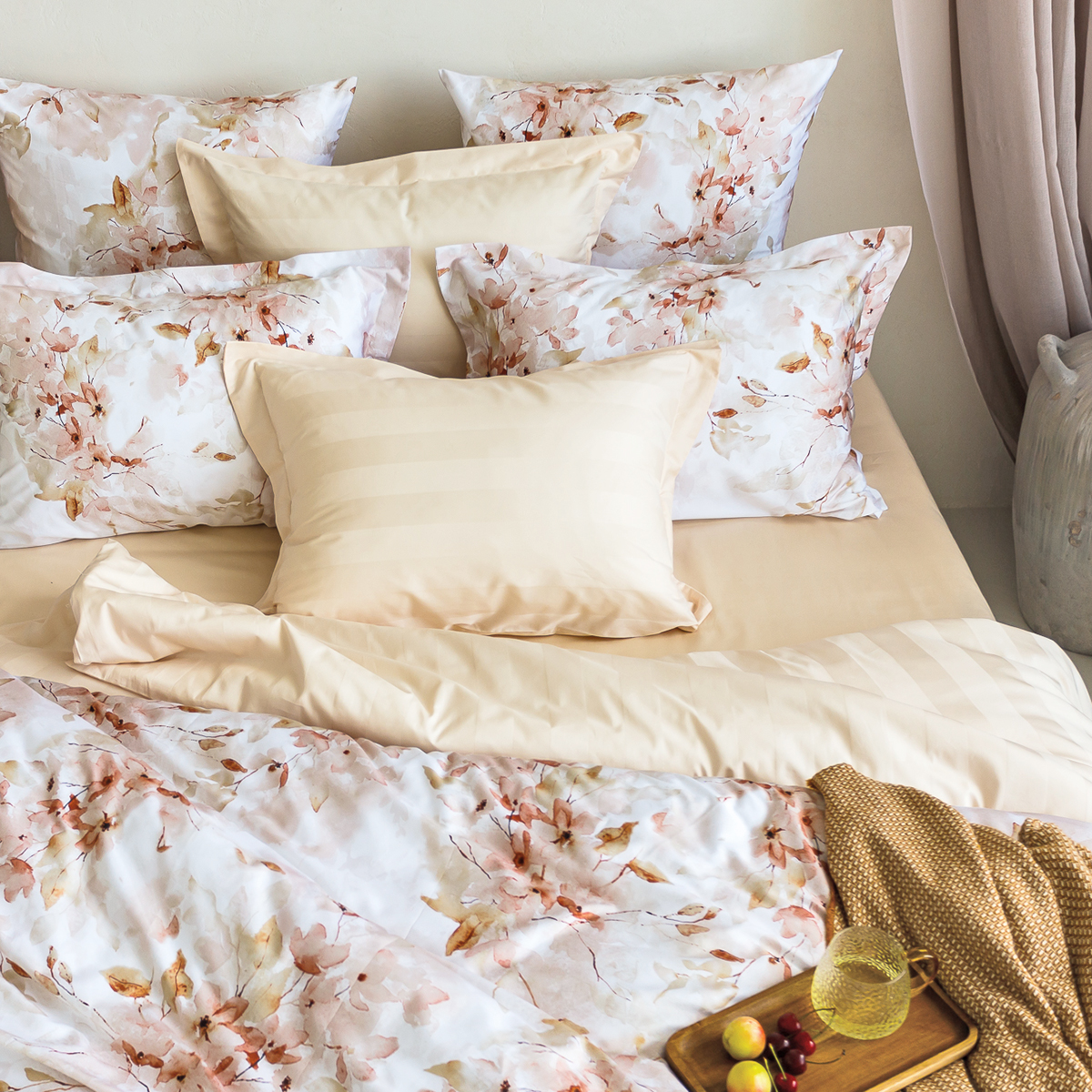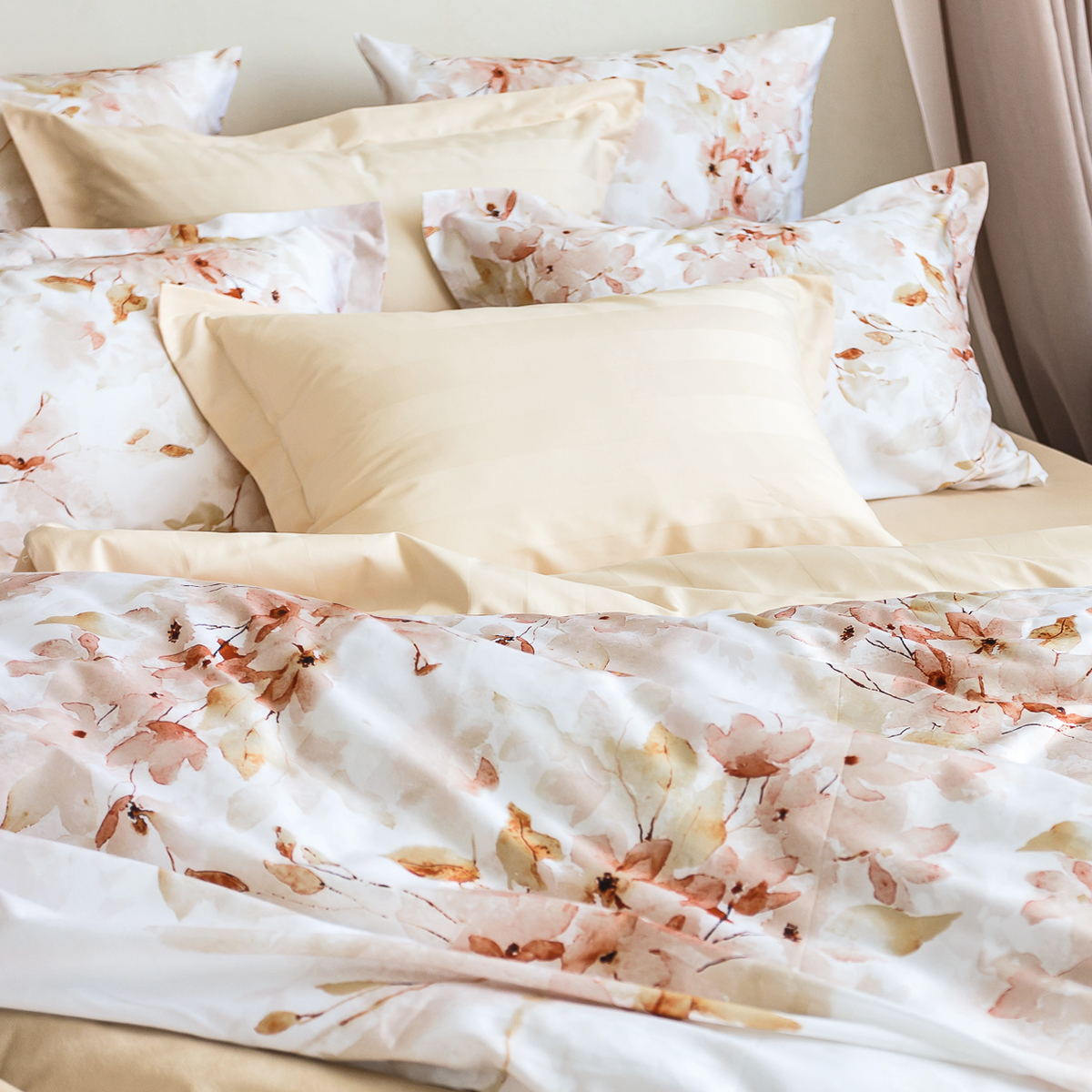 В ткани мако-сатин, из которой произведена коллекция, используется более тонкая 60-я нить. Плотность ткани 300 ТС. За счет специальной скрутки нити, ткань получается очень мягкая и приятная на ощупь.
