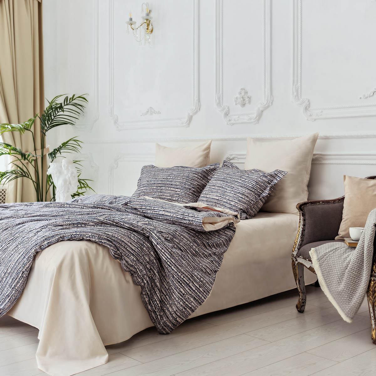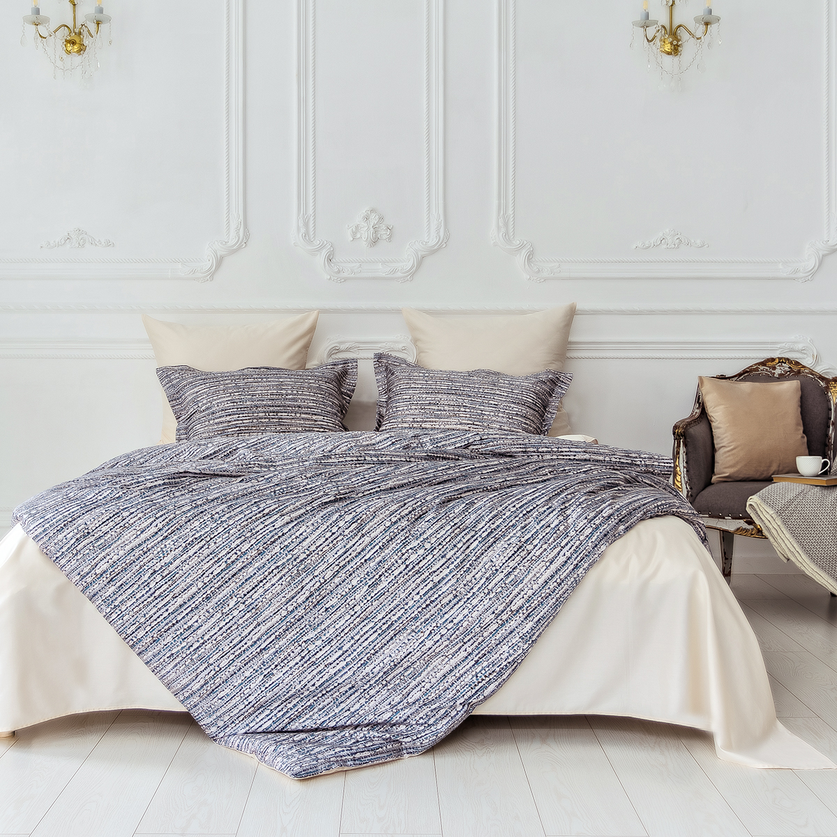 Тонкая 60-я нить и плотность ткани в 300 ТС делают мако-сатин невероятно мягким и приятным на ощупь. Специальная скрутка нити обеспечивает нежность, которая сохраняется даже после множества стирок. Это идеальный выбор для самой чувствительной кожи – ткань пропускает воздух, поддерживая комфортную температуру тела в любое время года, и является гипоаллергенной.