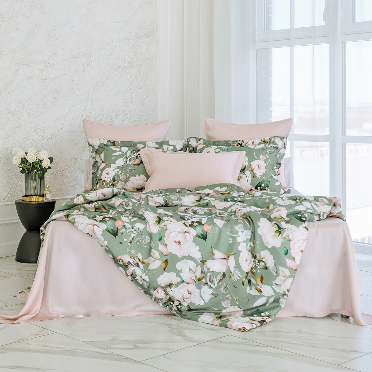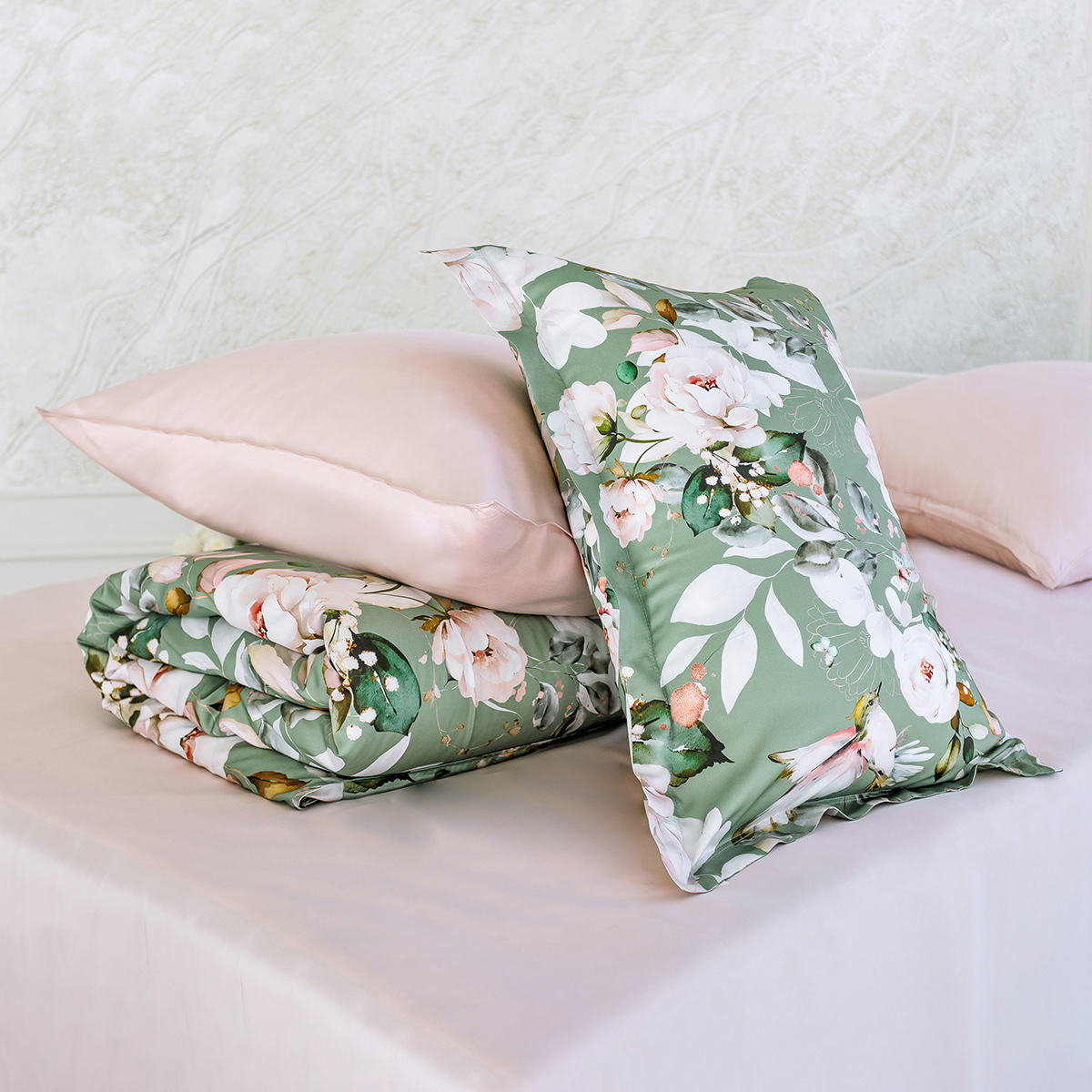 Свежесть цветов создаст в вашем интерьере атмосферу летнего сада. Окунитесь в гармонию природы и роскоши с этим элегантным комплектом, который подчеркнёт ваш безупречный вкус.