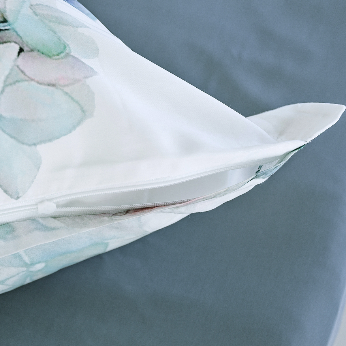 • 4 наволочки в комплекте:50х70см - декоративные ушки 4 см с двойной отделочной отсрочкой по трем сторонам наволочки. «Невидимая» молния по широкой стороне наволочки. 70х70см - двойная отделочная отстрочка по трем сторонам наволочки. «Невидимая» молния по нижнему краю наволочки.