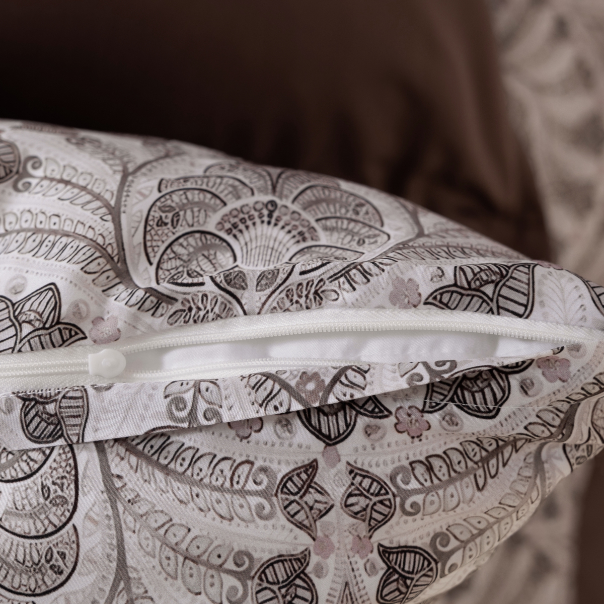 Дизайн постельного белья сочетает в себе утонченную элегантность и современные акценты. Принт с изысканным орнаментом в пастельных тонах создает атмосферу уюта и комфорта, а симметричные элементы в сочетании с мягкими цветами дарят ощущение гармонии. Роскошная текстура ткани придает особую воздушность, а глубокие оттенки в комбинации с мягким фоном превращают спальню в место для отдыха и восстановления. Этот набор идеально подходит для тех, кто ценит стиль, комфорт и нежность в каждой детали.