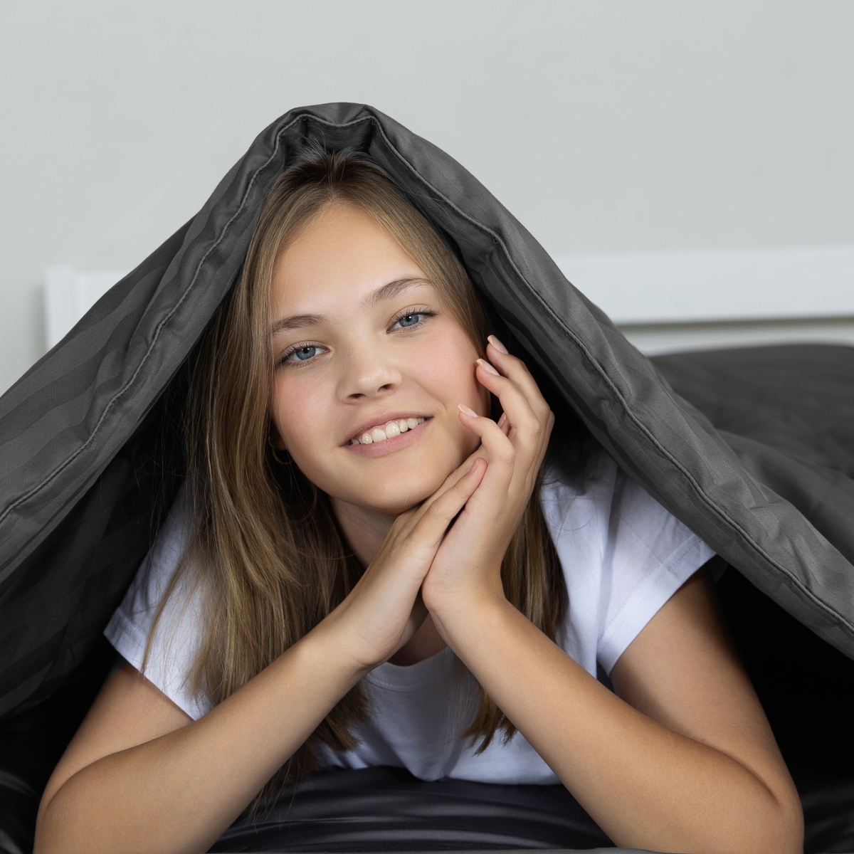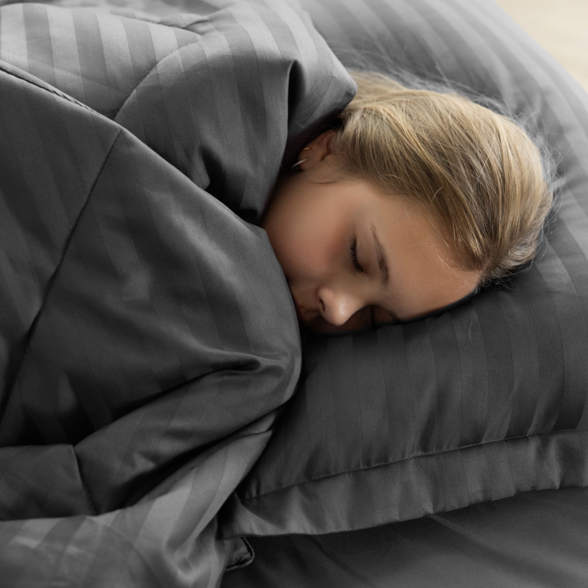 ПОСТЕЛЬНОЕ БЕЛЬЁ СТРАЙП-САТИН С ОДЕЯЛОМ 2 НАВОЛОЧКИ ТЕМНО-СЕРЫЙ