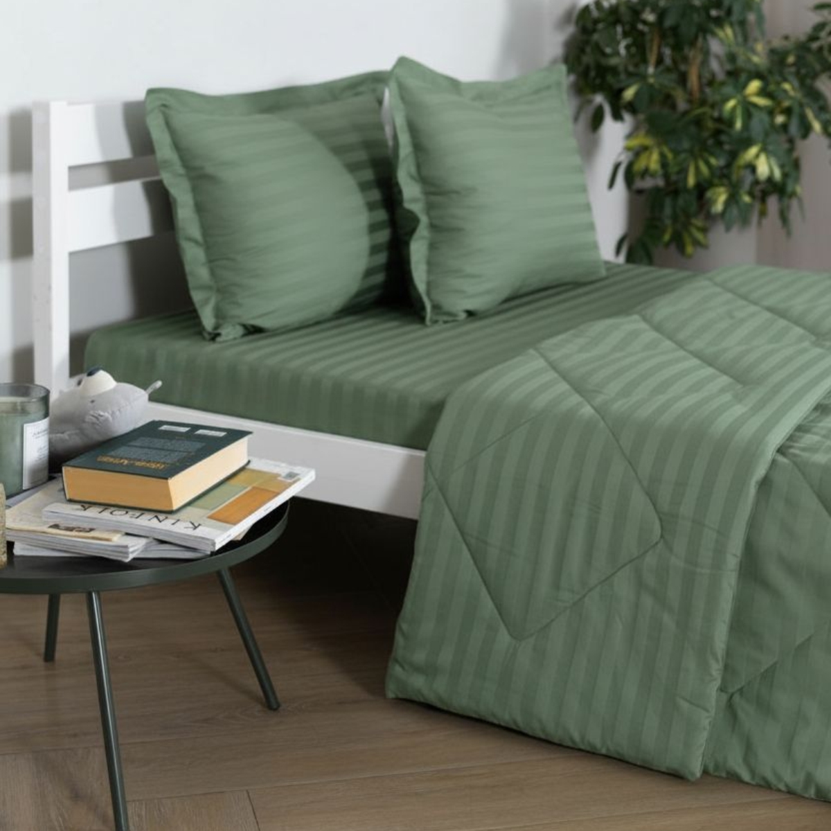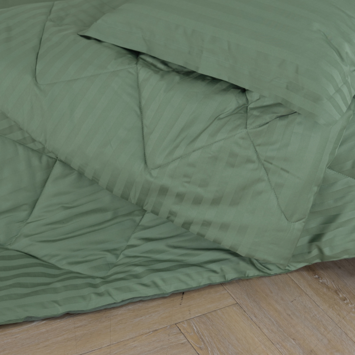 Постельное бельё Cатин | ПОСТЕЛЬНОЕ БЕЛЬЁ СТРАЙП-САТИН С ОДЕЯЛОМ 2 НАВОЛОЧКИ ЗЕЛЕНЫЙ
