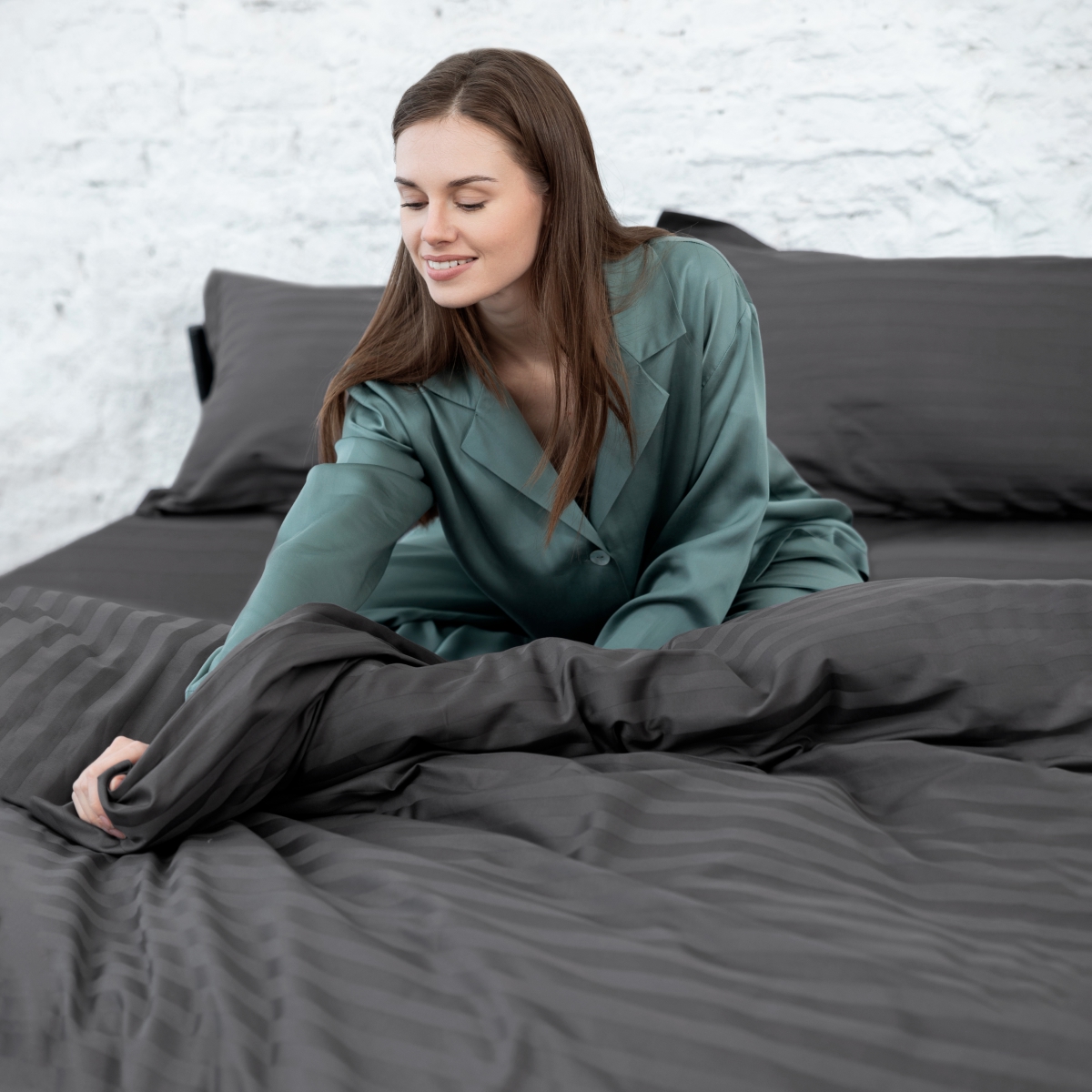 ПОСТЕЛЬНОЕ БЕЛЬЁ СТРАЙП-САТИН ТЕМНО-СЕРЫЙ