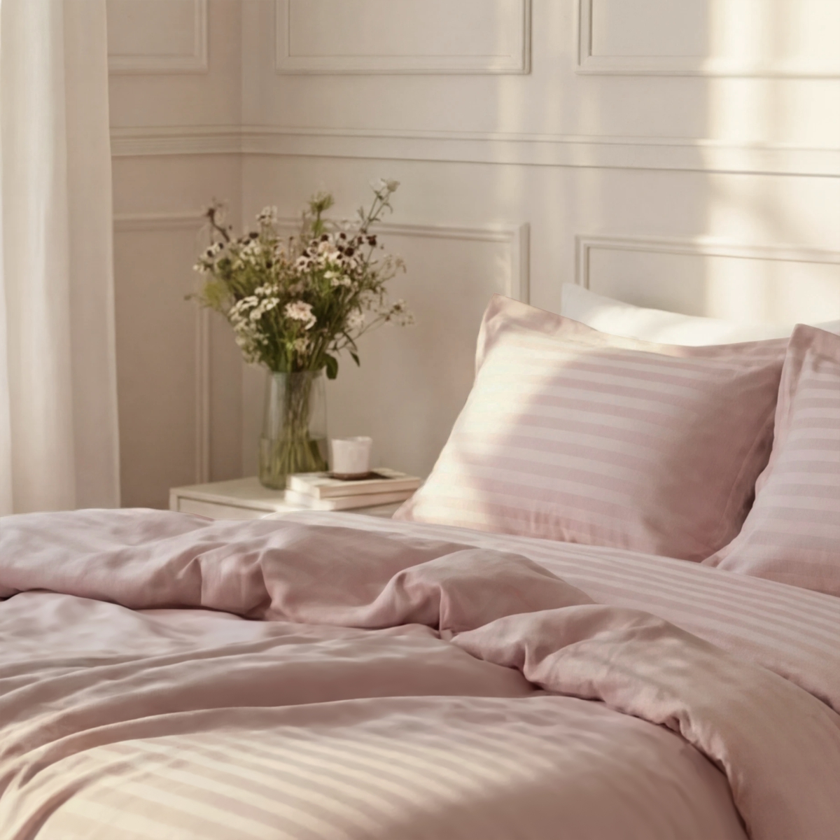 ПОСТЕЛЬНОЕ БЕЛЬЁ СТРАЙП-САТИН ПУДРА