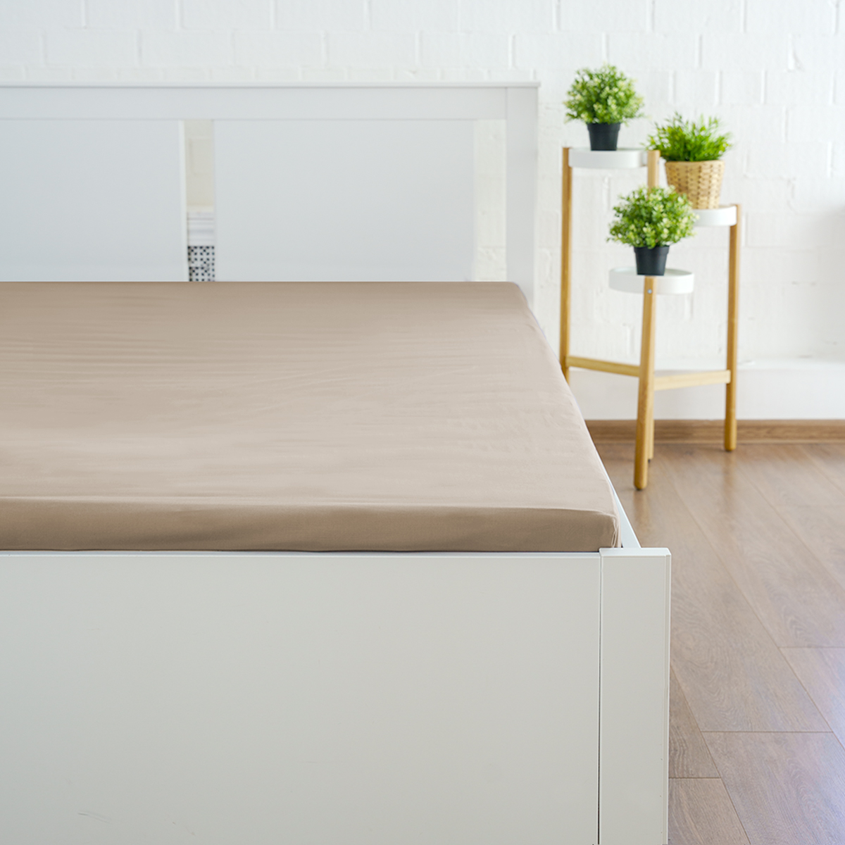 Однотонная стильная простыня на резинке (натяжная) произведена из ткани сатин – 100% хлопок.  Благодаря сатиновому плетению двойной крученой нити хлопка, сатин – очень приятная, мягкая, но в то же время прочная ткань. Пропускает воздух, поддерживает комфортную температуру тела, когда вы спите.