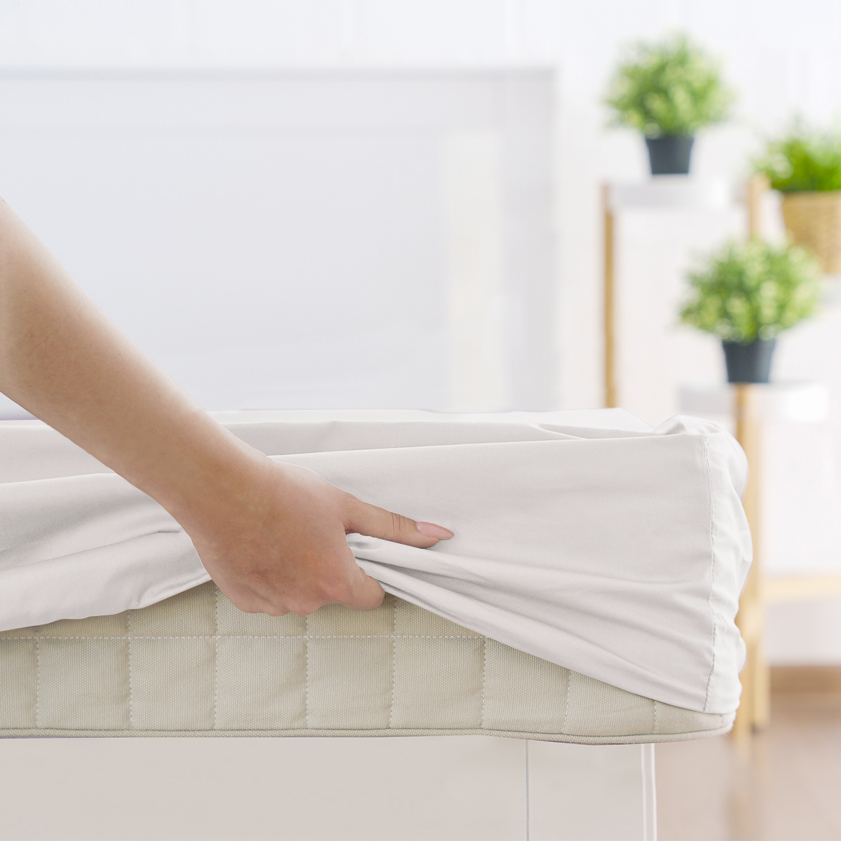 Детали: тонкая резинка по всему периметру простыни для плотной фиксации на матрасе. Высота бортика 30+5 см.