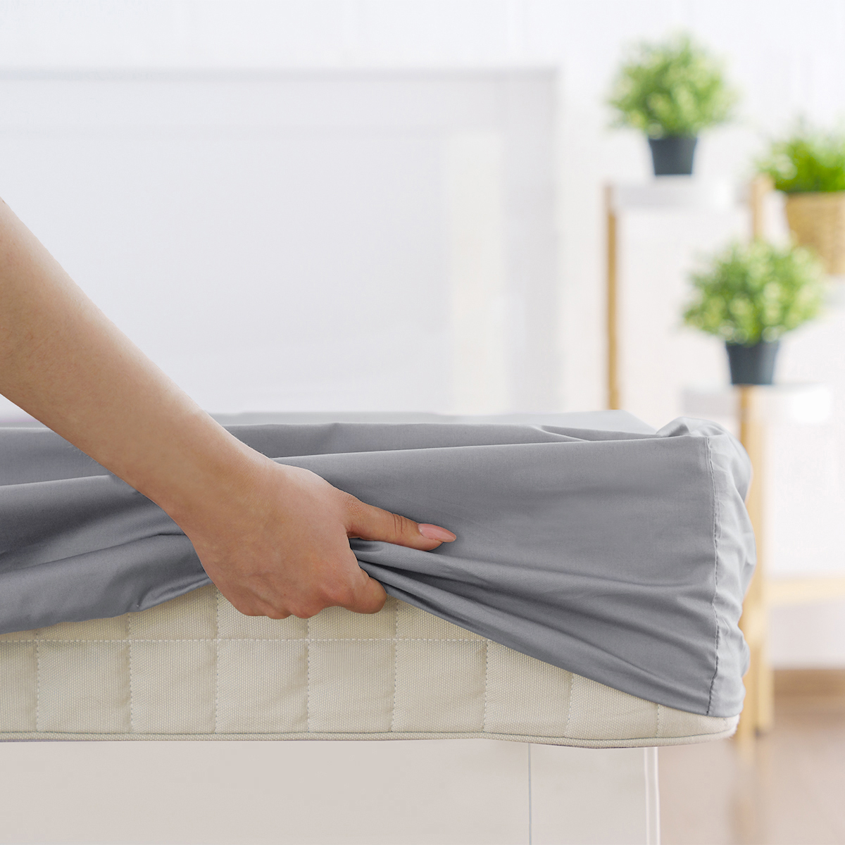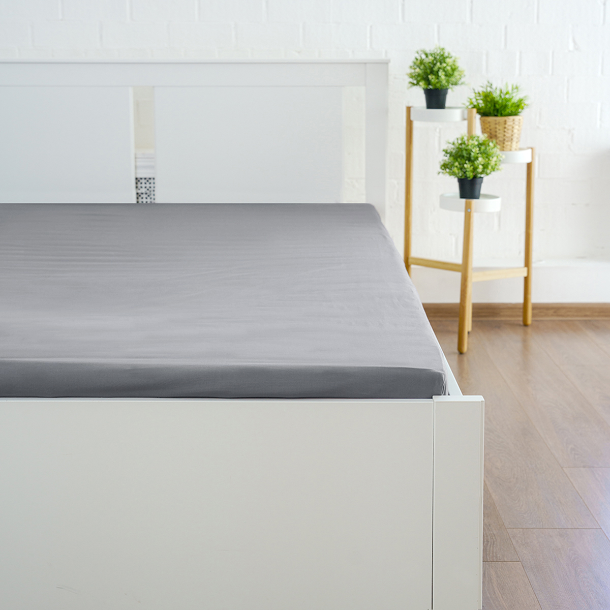 Однотонная стильная простыня на резинке (натяжная) произведена из ткани сатин – 100% хлопок.  Благодаря сатиновому плетению двойной крученой нити хлопка, сатин – очень приятная, мягкая, но в то же время прочная ткань. Пропускает воздух, поддерживает комфортную температуру тела, когда вы спите.