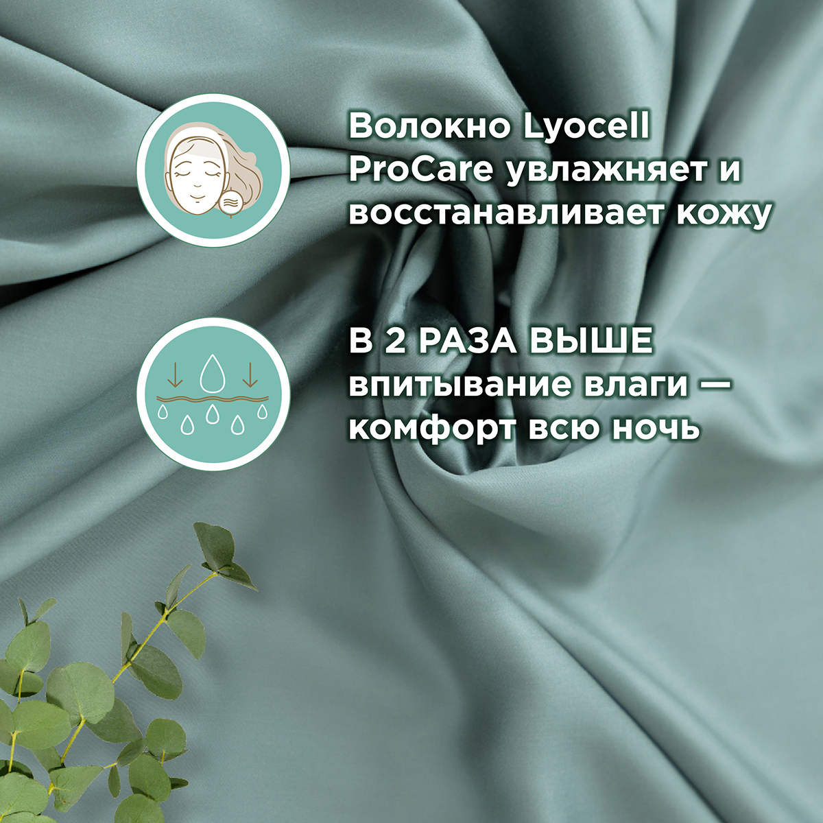 Уникальное волокно Lyocell ProCare обеспечивает восстановление водного баланса дермы. Отмечается увлажнение, смягчение и регенерация кожи. Кроме того, показатель впитывания влаги в 2 раза выше, чем у других тканей – гарантия комфорта на протяжении ночи.