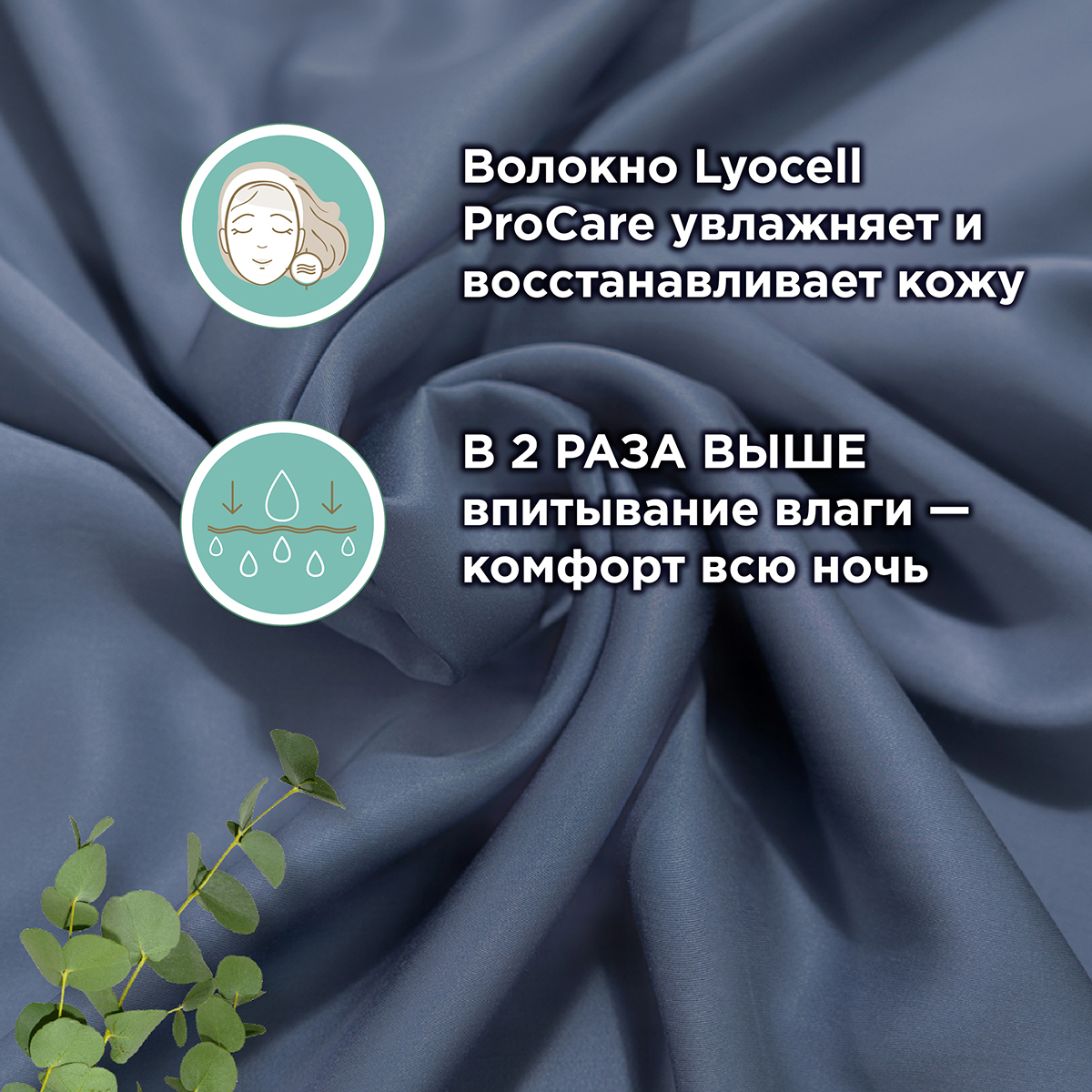 Уникальное волокно Lyocell ProCare обеспечивает восстановление водного баланса дермы. Отмечается увлажнение, смягчение и регенерация кожи. Кроме того, показатель впитывания влаги в 2 раза выше, чем у других тканей – гарантия комфорта на протяжении ночи.