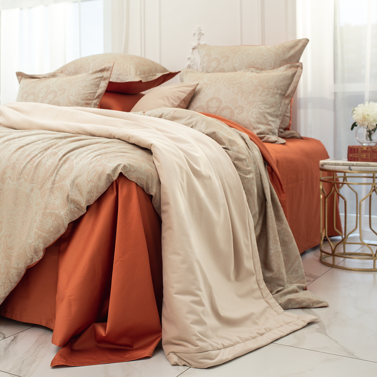 Внешне жаккардовое постельное белье выглядит очень дорого и изысканно. Благодаря тому, что нити в процессе производства перекручиваются, жаккардовая ткань очень плотная, прочная и устойчивая к деформированию, а рисунок и цвет не тускнеют в процессе эксплуатации.