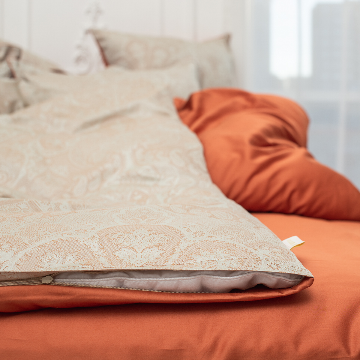 Гладить постельное белье рекомендуем слегка влажным при t° не выше 150 °C.