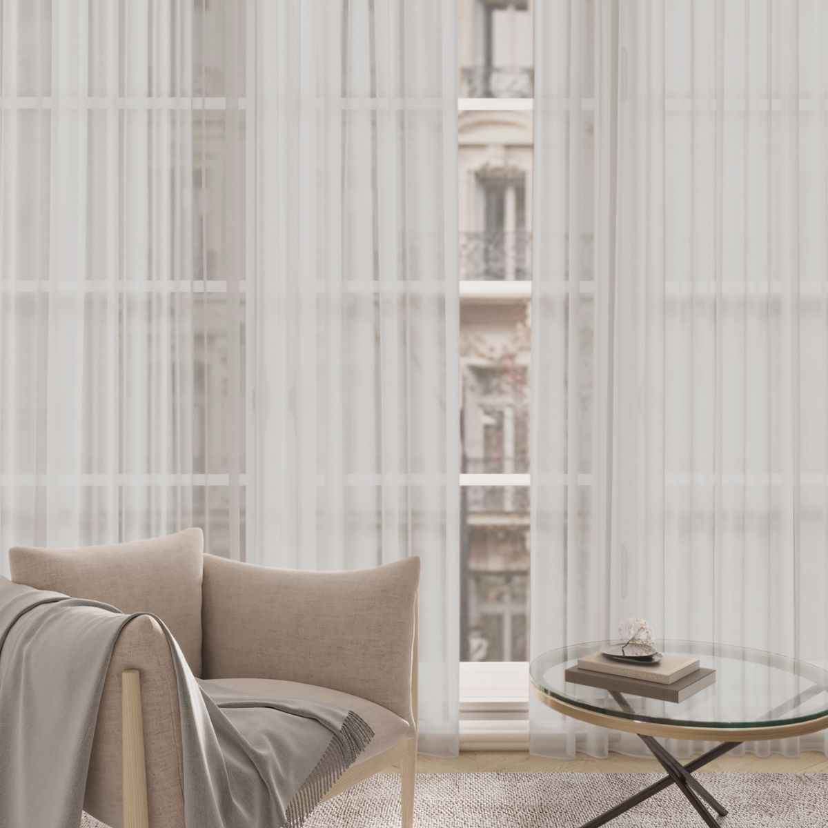 Легкая невесомая структура полотна соткана в виде сетки, фактура очень легкая, при этом есть возможность ощутить глубину цвета, придав интерьеру стильную завершенность.