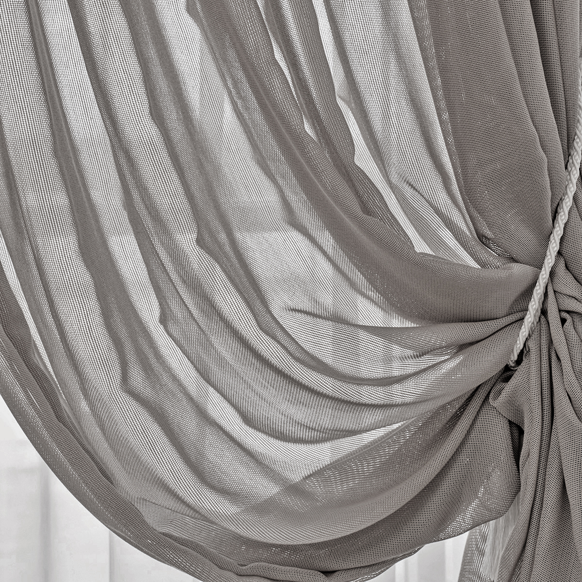 Легкая невесомая и в тоже время особо прочная, износостойкая ткань соткана в виде сетки. Натуральная фактура очень мягкая, приятная на ощупь. Прекрасно драпируется, может использоваться как самостоятельный декор окна.
